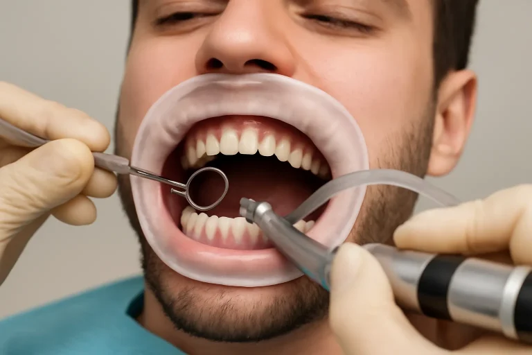 Air polishing is a modern dental technique designed to efficiently eliminate stubborn stains from both the front and back surfaces of teeth. This treatment uses a powerful stream of compressed air, water, and fine abrasive powder to gently yet effectively remove discoloration caused by substances like coffee, red wine, tea, tobacco, and some types of mouthwash.